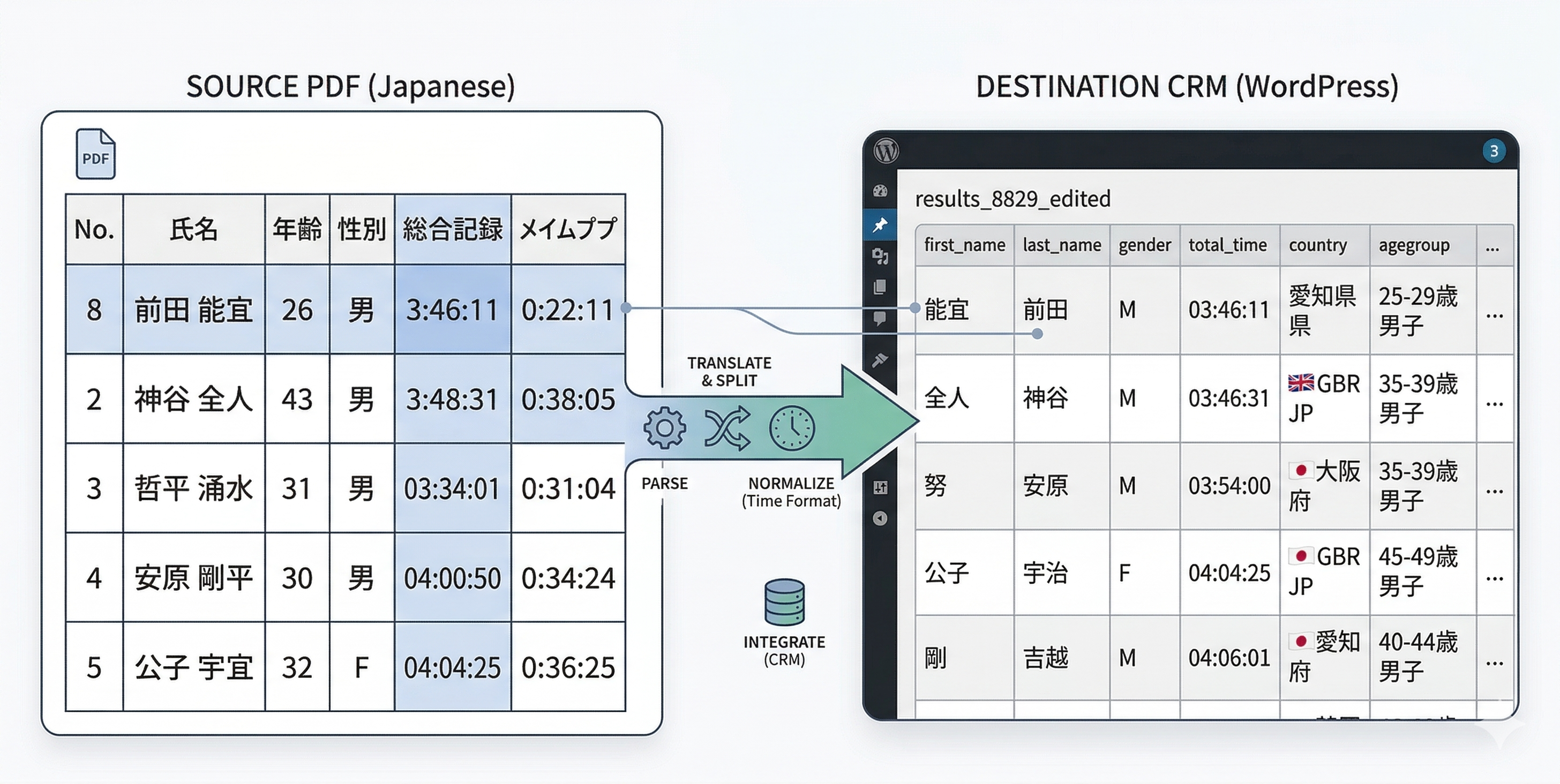 A triathlon results network was paying outsourced workers by the hour to manually type up race results from PDF documents. The process was slow, expensive, and full of human error.